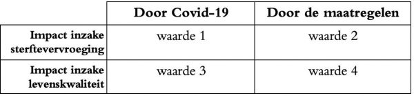 In de min of meer waanzinnige toestand waarin we nu vertoeven wordt alleen een (vertekenend) getal gegeven voor ‘waarde 1’ (het ‘aantal doden door Covid-19’).