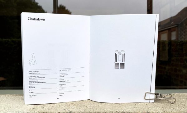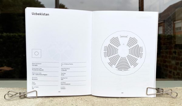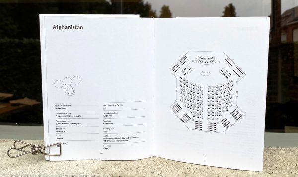 Georganiseerd als een woordenboek, van Afghanistan tot Zimbabwe, toont het boek het grondplan voor elk van de plenaire vergaderruimtes en de locatie ervan binnen het groter gebouw. Het publiceert per parlement ook een aantal cruciale gegevens: de typologie, het bouwjaar, de architect, het aantal zetels, het aantal politieke partijen, ….