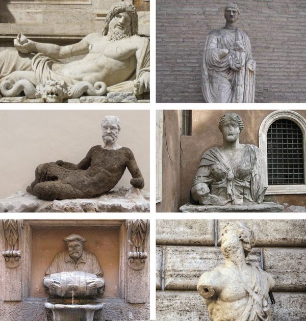Samen vormen ze het Congresso degli arguti (Het spotterscongres). Ze delen de laatste roddels of ergernissen met elkaar, meestal op sarcastische toon. De bekenste van de zes is Pasquino.