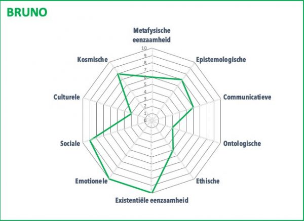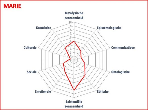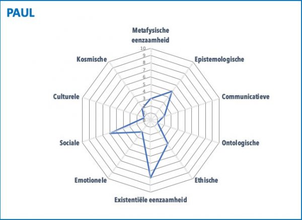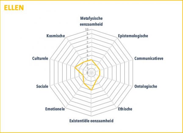Op basis van dergelijke onderzoek kan men voor elke betrokkene een spindiagram van eenzaamheid opstellen: hoe sterk is elk van de genoemde schakeringen van eenzaamheid op een bepaald moment aanwezig in iemands leven? Elke schakering krijgt een score van van 0 (afwezig) tot 10 (sterk aanwezig). Enkele fictieve voorbeelden: