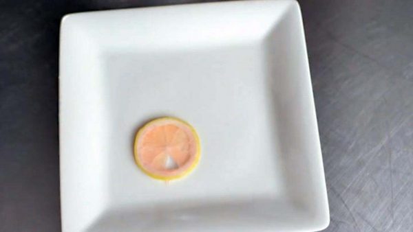 Genoeg granita op de citroen - Leg de geschilde perzik bovenop de granita, op de citroen als steun.