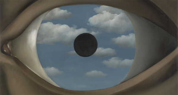 Magritte, net zoals vele surrealisten, was gefascineerd door het oog en zag het als een portaal “tussen het innerlijke, subjectieve zelf en de buitenwereld”. Man Ray (1890-1976), een joods-Amerikaans dadaïstisch en surrealistisch kunstenaar, bezat ooit Magrittes De Valse Spiegel en zou het hebben omschreven als ‘een schilderij dat net zoveel ziet als dat het zelf wordt gezien’. Het oog toont en het oog kijkt.