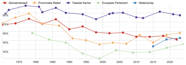 [1] Zie: X., “Opkomst bij de verkiezingen in Nederland”, in AlleCijfers.nl