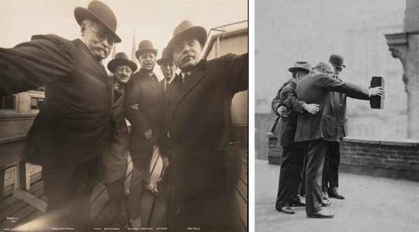 Ik denk trouwens dat Byron ook de eerste echte groepsselfie heeft gemaakt. Hier zien we hem in 1920 een groepsselfie maken. De vijf heren waren de toenmalige fotografen van de studio. Een van de vijf fotografen maakte ook een foto (rechts) die toont hoe ze de groepsselfie maakten.