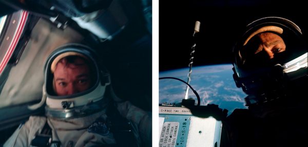 Mooier vind ik Buzz Aldrin (rechts) die de eerste EVA-spaceselfie (extra-vehicular activity) maakte tijdens de Gemini12-missie in 1966.