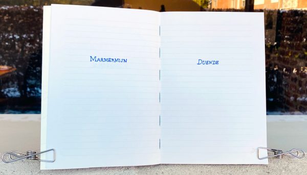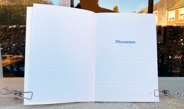 [1] Mijn schriftje is een waar kleinood. In 2019 ontworpen en uitgebracht door mensen met liefde voor het vak: Where They Wander, een Leuvens ontwerpstudio opgericht door illustrator en graficus Sebastiaan Van Dierendonck en zijn zus Charlotte. Ze hebben twee boekjes gemaakt: het notitieboekje –dat ik gebruik– en een schetsboekje.