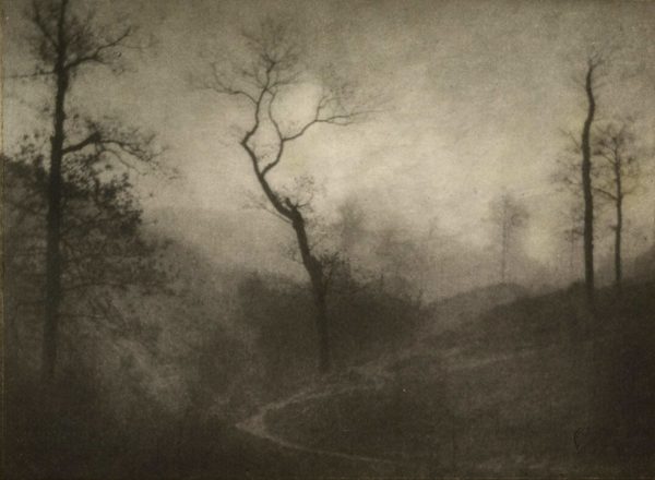Tegelijkertijd wilden de pictoralisten van fotografie een kunstvorm maken, op gelijke voet met de schilder- en beeldhouwkunst. Licht was alles voor hen. Daarin leunden ze aan bij de impressionisten. Dat zie je uitstekend in deze foto. Ze waren gefascineerd “door de oneindige diversiteit aan vormen en lichtnuances – de basisingrediënten van het medium – die bomen zo goed tot uitdrukking brengen.” [1] Ze reageerden ook op de komst in 1888 van de eerste Kodak-camera (’you push the button, we do the rest.’). Hierdoor werd fotografie bereikbaar voor iedereen. Ze zagen fotografie als een middel voor persoonlijke expressie. Ze onderzochten wat ze konden bereiken met lenzen, afdrukpapier, manipulaties in de donkere kamer, de producten die ze gebruikten om negatieven te ontwikkelen … Ze zagen zich als de echte amateurs, omdat ze fotografie beoefenden uit liefde voor de kunst.