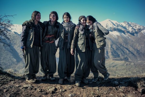 DEZE MOOIE foto ligt me nauw aan het hart. We zien hier vijf prachtige, jonge meisjes (±20-25 jaar) grappend en lachend ergens in de bergen. Het lijkt een foto uit een familiealbum of van een scoutskamp. Alleen schijn bedriegt: de vijf meisjes zijn lid van de gewapende PKK*. Ze vechten tegen IS aan de ene kant en de Turken aan de andere kant. Ze nemen de wapens op “om hun eer, hun land en hun volk te verdedigen” en voor vrijheid en gelijke rechten voor de vrouw.